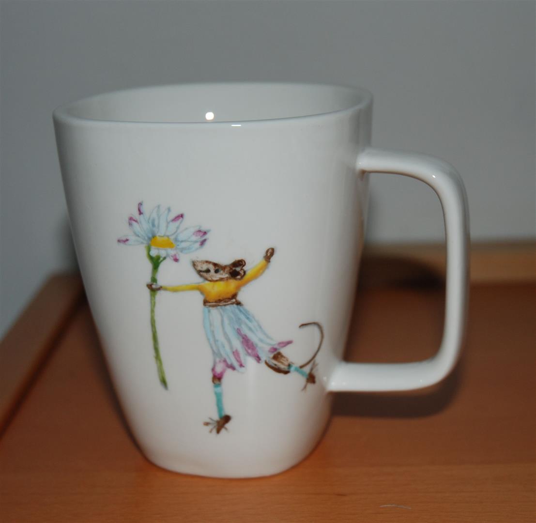 Auf dem Becher sind die Mäuse noch viel kleiner. Nach ein paar Stunden malen muss man nicht hinters Steuer sitzen, da sieht man nicht mehr so schnell in die Ferne, auch nicht mit Brille......