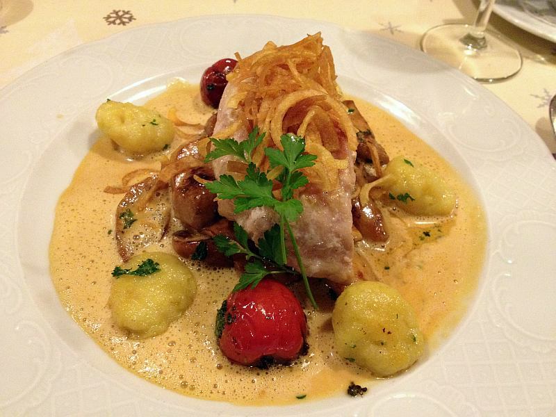stör mit hummersauce, kräuterseitlingen und gnocchi