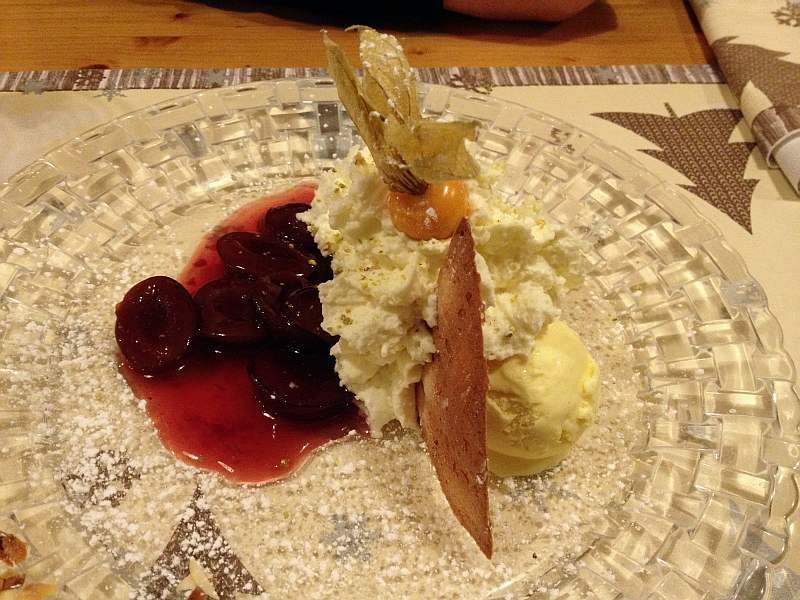 schaum von der weißen schokolade, rumzwetschgen und vanilleeis