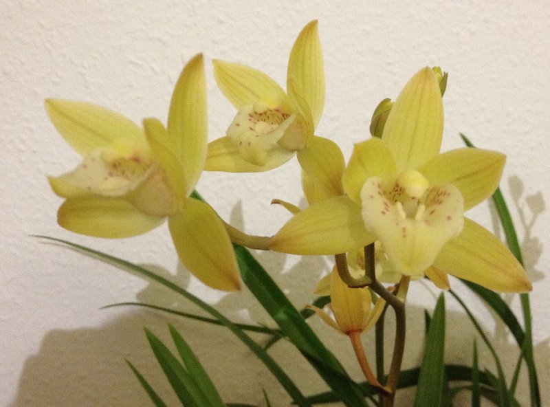 Zuverlässig mitten im Winter blüht diese Cymbidium-Hybride, deutlich kleiner als die üblichen Hybriden aber insgesamt auch nicht mehr wirklich als Mini zu bezeichnen.