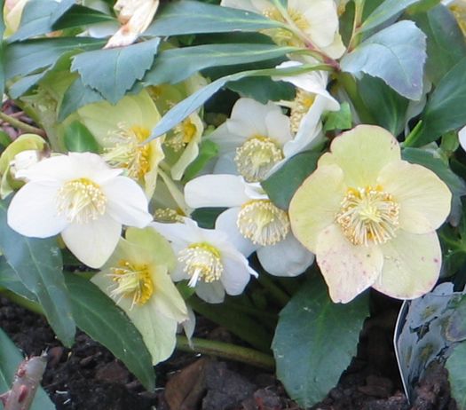 Einige der frisch erblühten in #1108 sehen mir rein weiß aus. Sie gilben halt schnell, die nigers. Dem Blatt nach sieht es nicht nach einer Hybride aus.Hier blühen seit kurz vor Weihnachten Absaaten von einer früher aus Samen gezogenen H. niger "Macranthus", Eine andere, die ich seit Jahrzehnten habe ("Praecox"?) war ab Oktober in Blüte. Weitere blühen dann ab März bis in den April. Nur die "Macrantha" versamt sich ganz gut, am liebsten in die Winterastern.