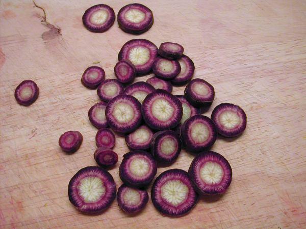 Mjami :PIch hatte letztes Jahr violette Rettiche, aber diese Möhren sind ja wunderschön durchfärbt.HmhmhmhmIch sag jetzt nix....