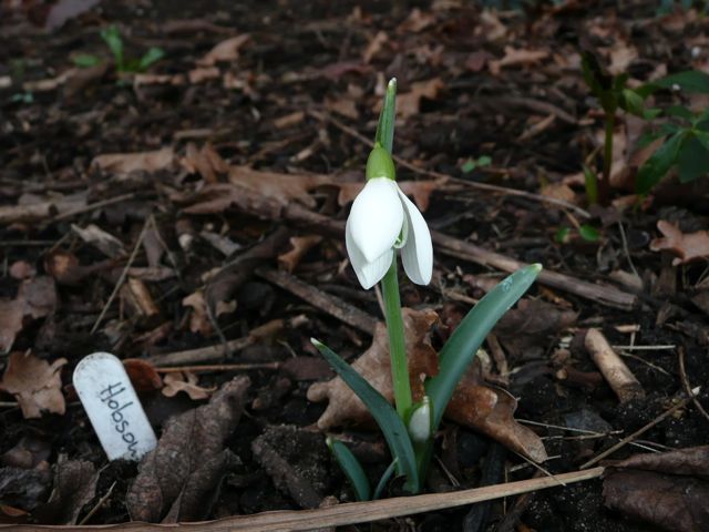 Als ich heute nach den G. nivalis schaute, die ich in den letzten Jahren vereinzelt hatte, fiel mir ein besonders stattliches Schneeglöckchen auf und dann angesichts des daneben steckenden Schildchens ein, dass Pumpot letztes Jahr bei einem Besuch eine Zwiebel mitgebracht hatte: ein herzliches Dankeschön an Dich für 'Hobson's Choice'!