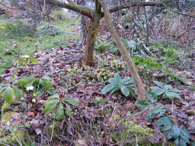 Helleborus x ballardiae "Merlin" vor "Olivenbaum"