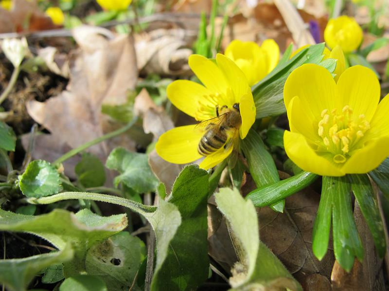 Bei mir blühen Winterlinge, verschiedene Schneeglöckchen, Iris danfordiae und 'George', Adonis amurensis hort., Helleborus, Märzenbecher und Elfenkrokusse in allen Farben von weiß bis rotviolett.