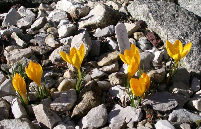 Da tut sich doch was - der Gartenfrühling beginnt!Der kleinblütige Crocus danfordiae noch unter Glas.