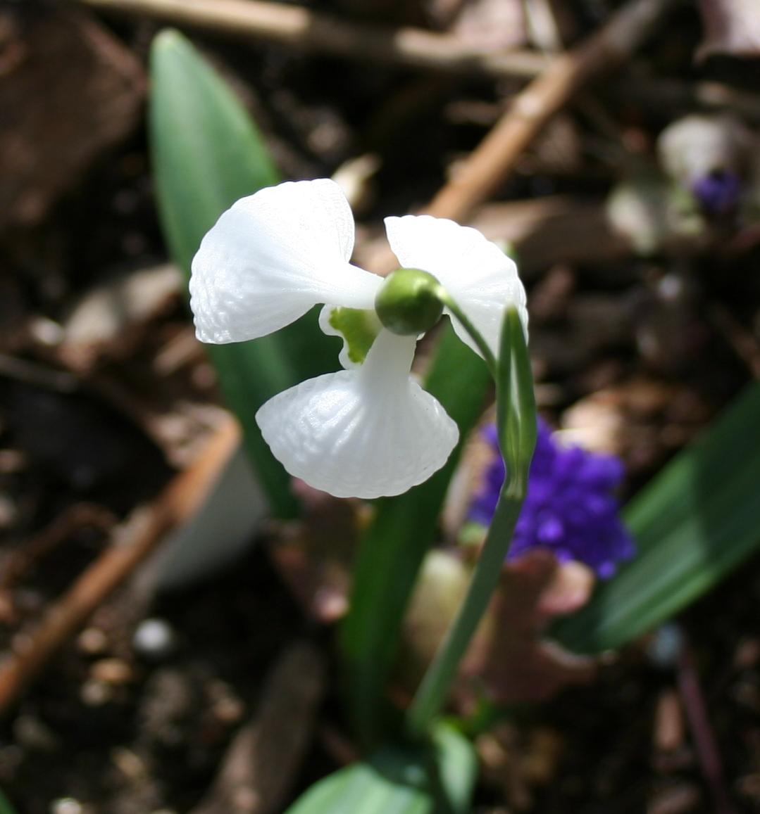 Das kann schon sein. Ist ja nur ein Arbeitsname, was ich vergaß, dazuzuschreiben. Ich würde einem Schneeglöckchen niemals einen englischen Namen geben, zumal ich dies in Hessen entdeckte. Aber - Hand auf's Herz - braucht man diesen Krüppel wirklich?Der Name 'White Wings' für ein Schneeglöckchen ist schon seit Jaaaaahren vergeben. Und zwar für eine Sorte von George Chiswell. Ursprünglich auch unter der Bezeichnung West Porlock No.7/8/9 verbreitet. Mal abgesehen bist du damit mindestens die dritte Person die den Namen verwenden will.Das ist mal ein tolles Ding! Hier habe ich eine Form von G. elwesii, die fast so aussieht, allerdings mit nach oben gedrehten Petalen. Ich habe den Krüppel 'White Wings' getauft. Er steht seit Jahren da, nur mit zwei Trieben.
