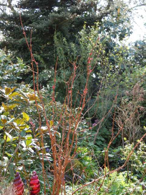 Das braune in der Mitte ist eine fast 2 m hohe Fuchsia regia ssp. reitzii.Und der rötliche Schimmer ist der Austrieb bis ganz oben