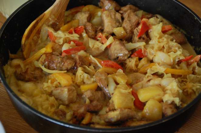 hier gabs hühnersuppe mit reis und viel gemüse.ich hab mir in meine portion noch kimchi reingeschnitten, weil ich säuerlich scharf sehr mag.