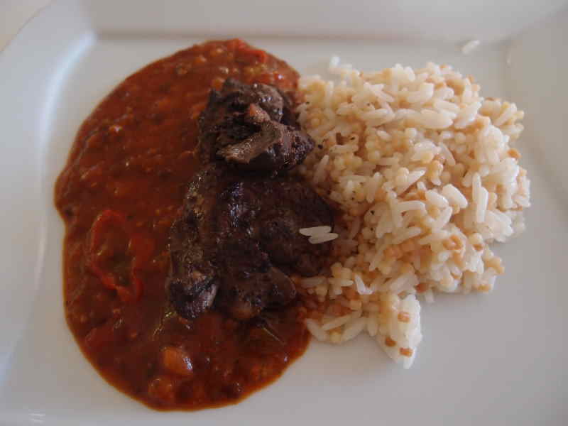 bilder müssen aber sein. allerdings am samstag ausnahmsweise ohne. wir waren nämlich zum grillen eingeladen. es gab steaks, spareribs, würste. mit nudelsalat, grünem salat, ratatouillesalat und baguette mit bärlauchbutter.sonntag dann für mich putenleber, für den liebsten hackbällchen in linsen-paprika-tomatensoße. dazu türkischer reis.