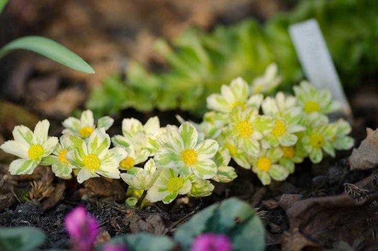 Immer wieder schön, Hacquetia epipactis 'Thor', mir seinen panaschierten Hochblättern in der Sonne.