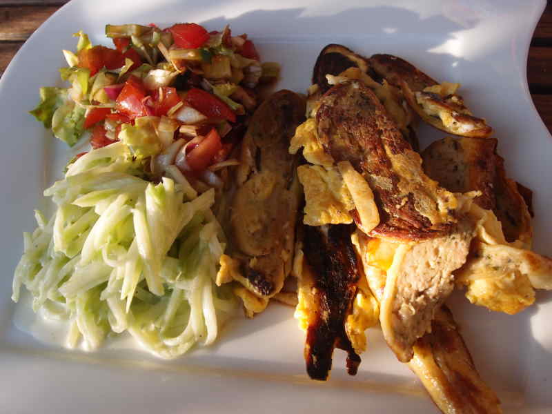 Die letzten Tage waren kulinarisch eher bescheiden. Donnerstag ist mein traditioneller Mittags-Müsli-mit Obst-Tag, am Freitag waren wir in einer Fleischerei, die auch Mittagessen anbietet - und ich hatte mir den total versalzenen Schmorkohl gewählt. Um ihn zurück zu geben, hatte ich leider zu viel Hunger. Heute war ich zur Weiterbildung, in den Pausen gab es die üblichen belegten Brötchen und zum Mittag Gulaschsuppe, die schon im Topf nicht gut aussah und angeblich auch versalzen war (ich habe keine gegessen). Zum Abendbrot dann gekauften Kartoffelsalat (ich mag den nicht sehr, aber mein Liebster schon) und Würstchen.Lichtblick: Morgen Kaninchen aus Handaufzucht und Schwarzwurzeln...