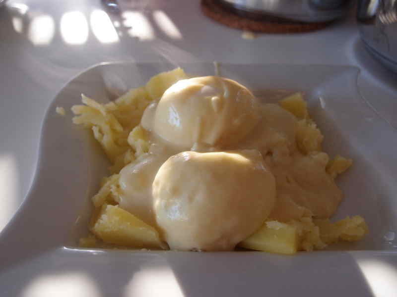 Mmmhm, und ich nehme jetzt die Senfeier; wie machst Du die, Aella?Bei uns gab es am Samstag zitronige Hähnchenbällchen mit Zitronenjoghurt und Gurkensalat.Am Sonntag hatten wir überbackene Paprika mit einer Risoni-Tomaten-Auberginen-Füllung; dazu Lammfilet. Am Montag haben die Reste der Füllung zusammen mit einer Schmand-Eier-Parmesandecke einen leckeren Auflauf ergeben.Am Dienstag gab es gebratenes Schollenfilet mit pommes und Grünem Salat.Und gestern war ich mit einer Freundin in einer Kneipe, da hatte ich Hähnchengeschnetzeltes mit Spätzle und Salat.(Bild gibts nur vom Samastag)lg, borragine