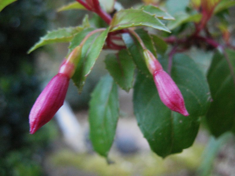 Eine Kuriosität in diesem Jahr: neue Knospen an winterharten Fuchsien.In andere Jahren sind die Blattknospen im März noch nicht zu sehen.