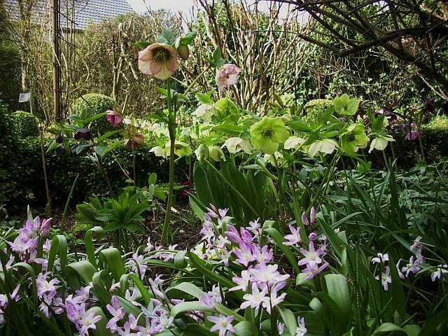 Wie es in ein paar Jahren aussieht, wird spannend: Es gibt jede Menge Sämlinge. Ich finde, das Schwefelgelb ist ein perfekter Kontrast (mit Fernwirkung) zu den dunklen Blütenaussenseiten der Helleboren.Eigentlich müsste man Helleboren oben auf ner Mauer pflanzen, um ihnen ins Gesicht blicken zu können.