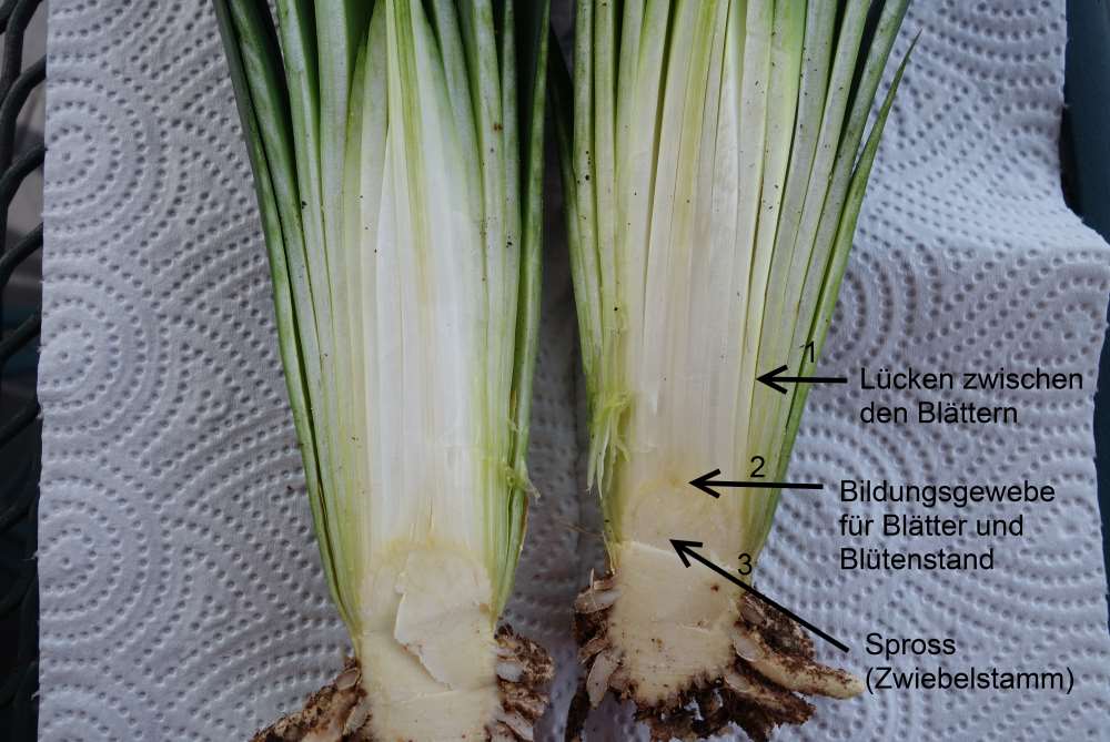 Hallo zusammen,wie oben versprochen, zeige ich Euch schneller als von mir gedacht einen Längsschnitt durch eine Klivie. Pfeil 1:Zwischen den Blättern gibt es Lücken, durch die die extrem kleinen Larven der Schmierläuse bis zum Bildungsgewebe des Sprosses wandern können. Die Lücken sind noch ein wenig größer, wenn sich neue Blätter und Blüten bilden. Je größer eine Klivie ist - eventuell mit mehreren Kindeln -, desto mehr Versteckmöglichkeiten gibt es für die Schmierläuse und deren Larven.Da die Spritzmittel und Wasser nicht bis zum Bildungsgewebe vordringen, können die Schmierläuse auch nicht mit ihnen in Kontakt kommen, entgehen so der Giftbrühe und schädigen die neuen Blätter sowie Blüten der Klivie. Nach einiger Zeit gelangen einige von den nun größer gewordenen Schädlingen nach oben und man kann sie erst dort erkennen und denkt irrtümlich nur an einen Neubefall. Der Schaden ist dann schon eingetreten.Pfeil 2:Dies ist das Bildungsgewebe, in dem sich neue Blätter und die Blüten bilden.Pfeil Nr. 3:Nur das sehr kleine Oval ist der eigentliche Spross, den man bei Klivien Zwiebelstamm nennt und an dem sich nach unten die Wurzeln und nach oben die Blätter ausbilden.Ich hoffe, dass diese Ausführungen für einige von Euch von Interesse sind.Viele GrüßeElkeWenn einer meiner Klivien-Sämlinge blüht und er mir nicht gefällt und ich ihn auch nicht verschenken möchte, weil er nur mit allergrößter Mühe gepäppelt werden kann oder andere Macken hat, werde ich bei dieser Klivie einen Längsschnitt durch den Zwiebelstamm machen und diesen fotografieren, damit alle Interessierten an diesem Foto besser erkennen können, wo sich die Larven der Wollläuse gut verstecken können, sodass man sie auch mit mehreren Wasserwaschungen und diversen Spritzungen mit Kontaktgiften nicht erreichen kann und die Schädlinge nach vielen Wochen wieder fröhliche Urständ feiern können. Bis ich so eine Klivie habe, bei der ich diesen Längsschnitt vornehmen kann, wird es aber noch einige Monate dauern.Viele GrüßeElke