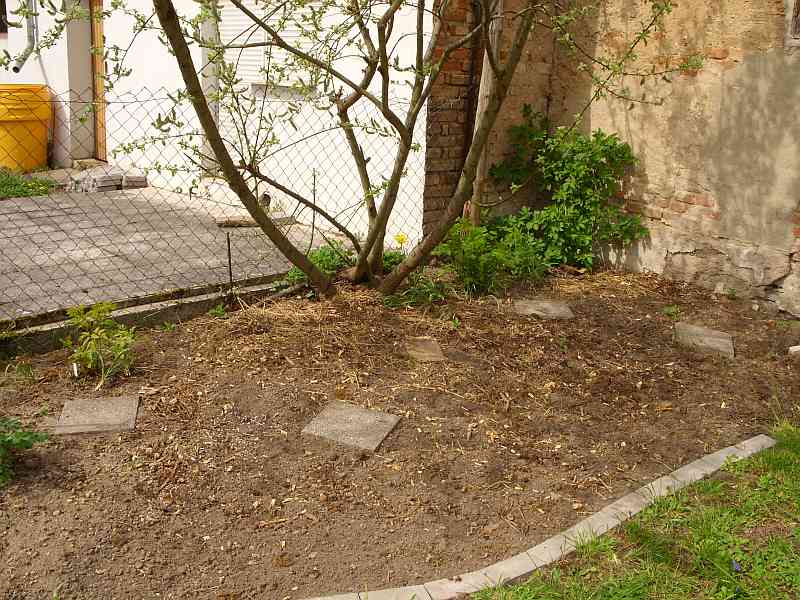 Nachdem ich Trittsteine und Beetkante verlegt hatte, sah das Ganze ab letzten April erstmal eine ganze Weile so aus, denn meine Staudenbestellung kam nicht ran...