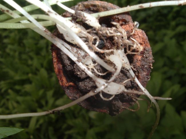 Ich habe gestern in einem Feld mit Bärlauch einige Jungpflänzchen aus dem Boden gezogen, um sie zu Hause einzupflanzen. Als ich sie in der Hand hielt, sah ich, daß sie in einer Walnußschale wuchsen!