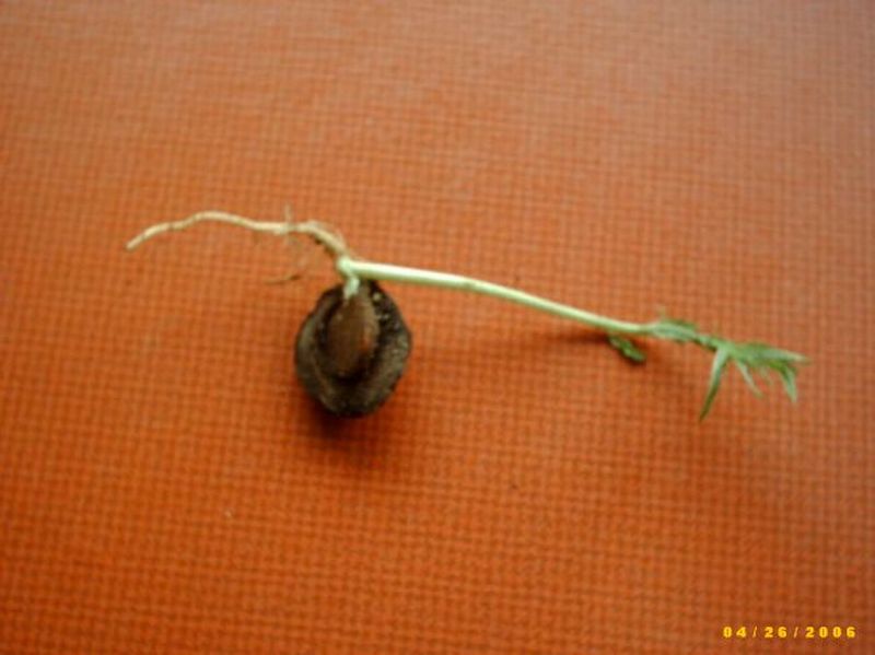 Heute brachte mein Mann einen halben Pfirsichkern aus dem Komposter, aus dem bereits ein junges Bäumchen wuchs.(Leider macht mein Billigfoto in der Nähe meistens unscharfe Bilder).LG Natura