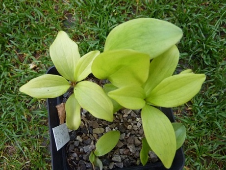 Das ist eine Lilium martagon var. caucasicum mit Chlorose. Kann es sein dass sie Kalkmangel oder Stickstoffmangel hat?