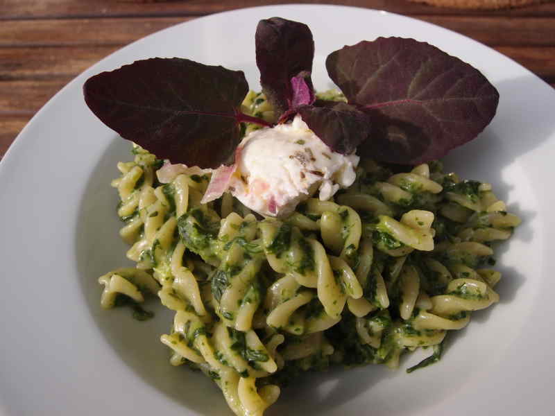Das schnapp ich mirbauernfrühstück mit paprikaschafskäsesalat und löwenzahnsalat