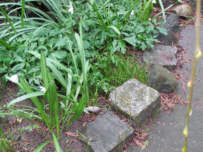 Jetzt brauche ich auch Bestimmungshilfe.Es ist zwar nicht viel zu sehen, aber vermag mir jemand zu verraten, was das später werden möchte?Ich meine die grünen Stengelchen, zwischen den Steinen am Rand und auch dahinter. An dieser Stelle wachsen im Wesentlichen nur Schneeglöckchen und Scilla Sibirica.Tippe ich richtig auf Schneeglöckchen-Nachwuchs?Die Anemone, die sich gerade nach oben quält, soll Anemone Vestal sein. Sollte ich sie besser von diesem unbekannten Nachwuchs befreien, oder kann sie das ab, sofern es Schneeglöckchen sein sollen?