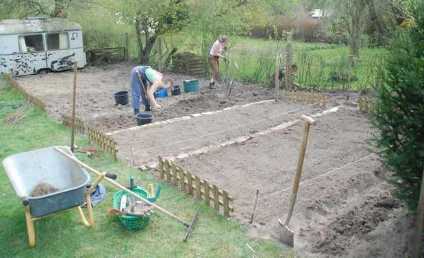 Am letzten Sonntag wollte ich mir mal in Ruhe ansehen, wie neue Gemüsebeete fabriziert werden. Ich hatte den Mädels ein paar handliche Gartengeräte mitgenommen, damit sie keine Ausrede haben- weit gefehlt, ich hätte keine, meinten sie.