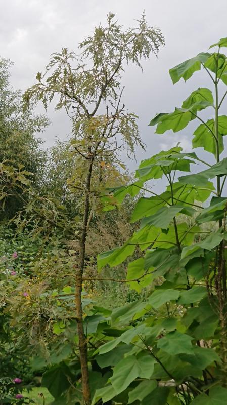 Nächstes Jahr (oder jetzt im Herbst) fliegt die Paulownia neben ihr raus. Ich vermute sie mag nicht so bedrängelt werden.