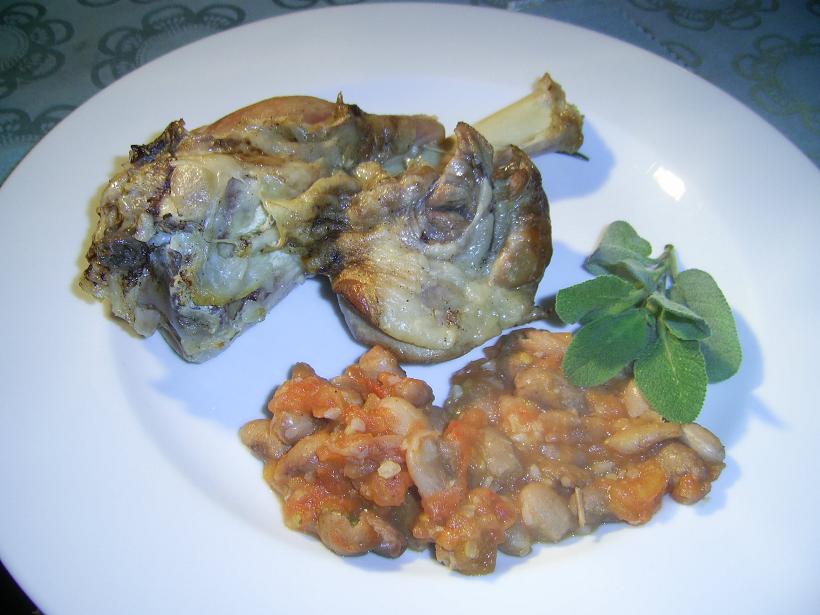 @ oile: Die Täubchen sehen phantastisch aus, die könnten mich auch verlocken.Bei mir folgt nun noch das Osteressen:Es gab Lammstelzen mit Fagioli all' uccelletto, sprich Borlottibohnen in einer Knoblauch-Salbei-Tomatensauce; das war allerköstlichst.