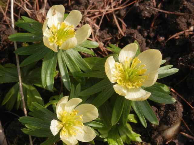 Von mir auch zwei Eranthis, die gerade blühen. Eranthis hyemalis ist hier schon fast komplett verblüht