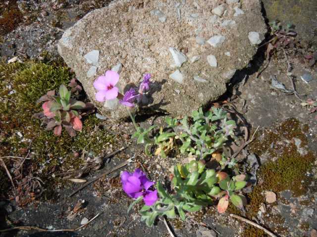 Heute hab ich die Aubrieta im Hofpflaster abgelichtet. Die Farbe hab ich so bei Blaukissen noch nicht gesehn. Leuchtendrosa mit Lila Mitte.Ist das was besonderes oder gibt's das schon?Habs mal rausgepfriemelt und umgesetzt.