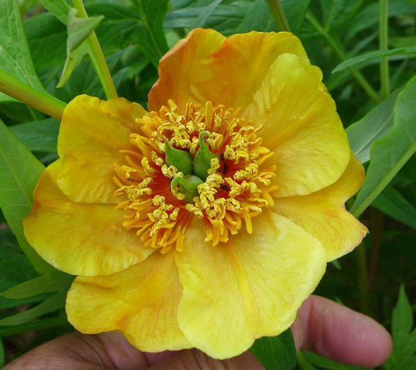 Ich hatte sie 2006 bei gartenhandel-online.de bestellt. Die Firma im Taunus gibt's aber glaub ich nicht mehr.Das waren damals mehr oder weniger die einzigen, die chinesische Rockii importierten. Die Pflanzen wurden in China nach Strains ausgesät und nach der ersten Blüte ausgelesen, ausgegraben und nach Europa verschickt.Somit düfte ich Unikate aus China habenJin ding Young ZhuDie offenen Blüten sind riesig und die ganze Umgebung duftet schwer nach alter Rose. Hab bishern noch keine Strauchpfingstrose gesehen, die so nach Rose duftet.