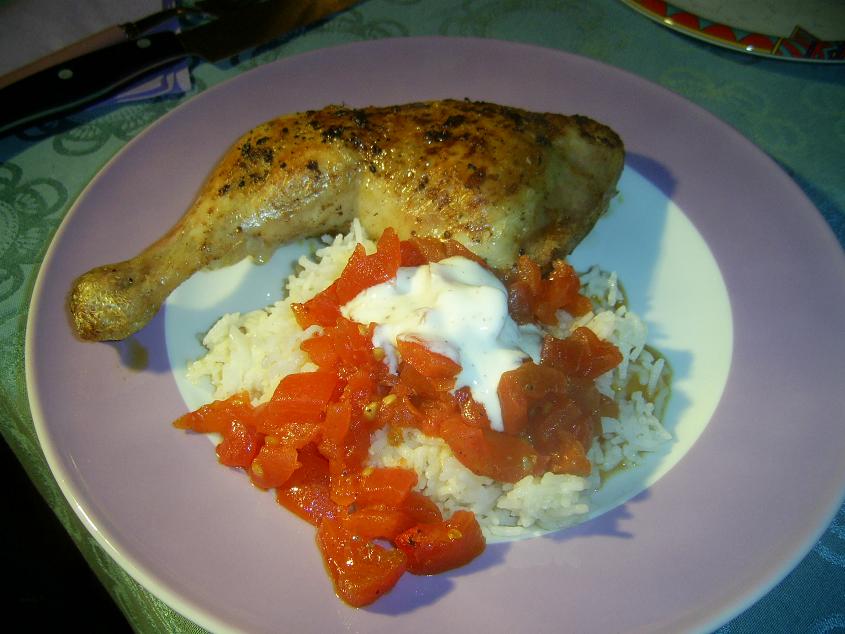 Am Samstag habe ich mich von fridas Suppenbuch inspirieren lassen und eine leckere Spargelsuppe mit Rauke gekocht.Gestern gab es Hähnchenkeulen, die in einer orientalisch gewürzten Marinade gezogen haben und dann mit der Marinade und Tomaten im Ofen gebraten wurden. Dazu gab es Basmatireis und obendrauf Limettenjoghurt.lg, borragine