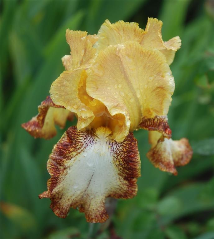 Iris barb.'Loveley Again', blüht trotz Vernachlässigung wie verrückt. Eine namenlose frühe