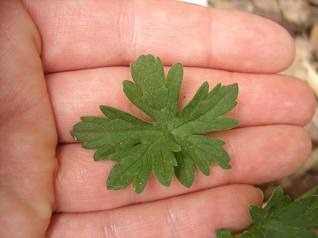 Ich hab dämlicherweise wohl kein Habitusbild gemacht, aber vom Wuchs würde ich bisher Richtung sanguineum tippen. Das gezeigte Blatt ist noch das größte (und ich hab ziemlich kleine Hände) und die ganze Pflanze vielleicht 10 cm hoch :-\