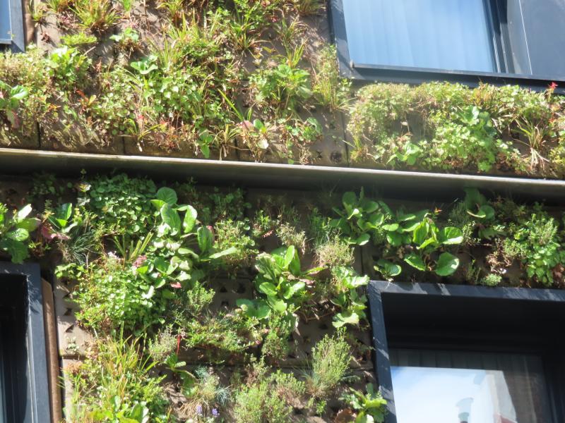Um der immer unerträglicher werdenden urbanen Sommerhitze etwas entgegenzusetzen, werden in Wien viele Fassaden begrünt, auch vertikal. Ein Beispiel dafür ist das - ansonsten wenig attraktive - Gebäude der MA 48 (Magistrat), an einem anderen spazierte ich unlängst vorbei: