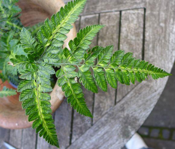 Habe heute diesen Farn gekauft. Auffällig ist bei den Wedeln die attraktive helle Mitte.Auf dem Etikett steht "Arachniodes standishii". Das aber dürfte falsch sein.Kennt jemand meinen Farn?