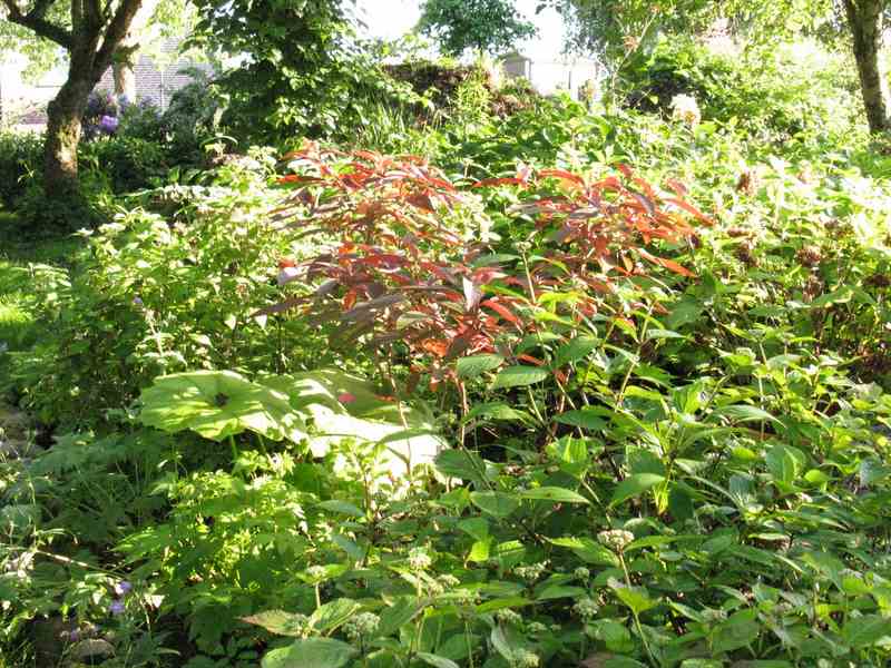 Scabiosa, Heuchera 'Palace Purple', in denen sich das braun-rot der Rodgersien-Blätter wiederholt, sind eine sehr gute Idee.Ich weiss nicht, ob ich dann überhaupt noch Platz für Hosta haben werde (anfangs sicher ja, später werden sie vermutlich von den Rodgersien überwachsen) – aber welche Farbe dann? Ein ganz „normales“Grün mit ganz dezent weiss dabei?Wie z.B. Paradise Paradeoder Silver Shadow ?