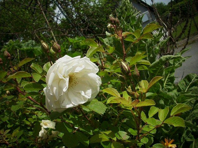 rosa rugosa mme georges bruant hat zwar schöne blüten und einen starken duft mit herber note, aber die blüten sind sehr regen- und hitzeempfindlich.