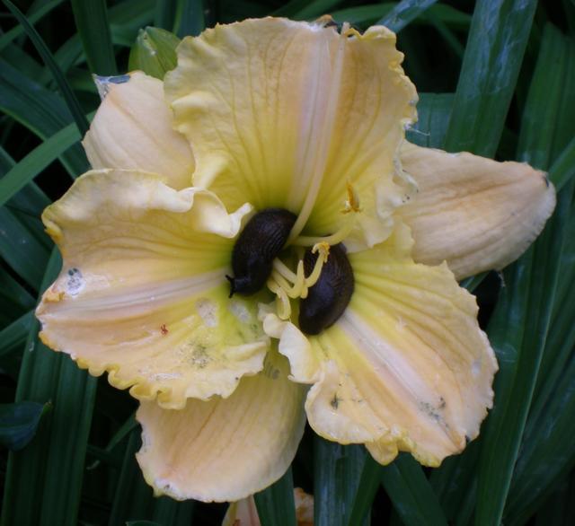 Ich kaufe am Freitag für die nächste Runde ein - vor einer Woche hat es grad mal die Hälfte der Schnecken erwischt - es sind einfach so viele, daß die Körneranzahl nicht gereicht hat.Hier regnet es heute auch - bei mageren 15°C - und ich freu mich, daß ich frühmorgens, wo es noch trocken war, die nächsten Blüten geknipst habe. Visual Intrigue steht unter Dach auf der Terrasse und das ist aktuell wirklich eine Freude. LG
