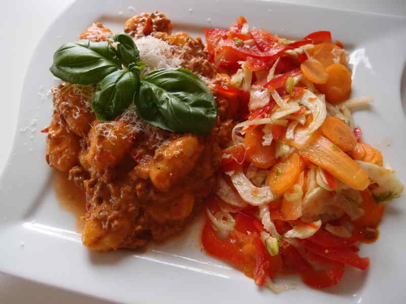 Mmmhmm Gnocchi bolognese, davon nehme ich was, sieht lecker aus.Bei uns gab es am Sonntag grünen Spargel mit Bozener Sauce.