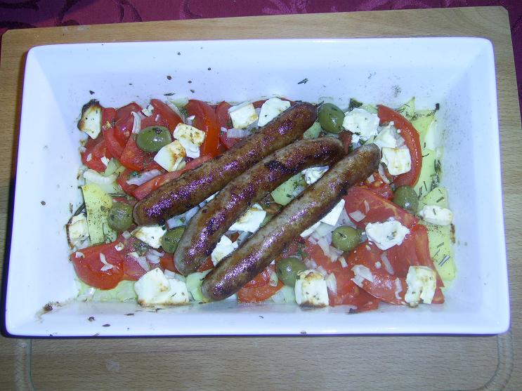 Und gestern habe ich noch mal eine Anleihe bei zwergarten gemacht: Es gab Ofenkartoffeln mit Rosmarin/Thymian, Tomaten, Zwiebeln, Oliven und Schafskäse und dazu Lammbratwürstchen.OT: Weiß jemand wo Lieschen steckt? OT Endelg, borragine