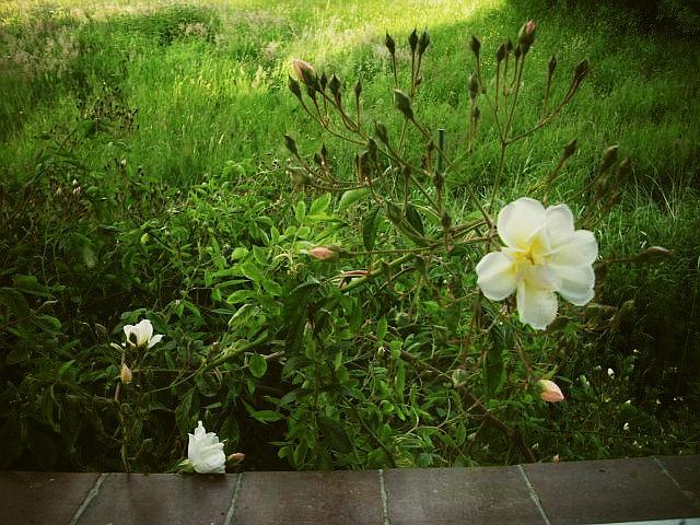 jetzt fragst du mich aber was, das ich nicht beantworten kann. ferdinand als remontantrose legt gerne die zweige um, um so reichlicher zu blühen. da mein exemplar zu gross wurde, hab ich einen rosenbogen dazu gestellt und ihn festgebunden, damit mein durchgang freibleibt. honorine hab ich nur kurze zeit gehabt. sie gehört zu den opfern des rosentodwinters vor ein paar jahren. ferdinand hatte das überlebt, wenn auch runtergefroren. ich hatte honorine übrigens auch als ferdinand beschildert gekauft, war er aber eindeutig nicht.