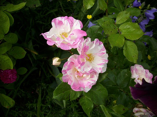 Die Martine hat dieses Jahr so viele tolle und auch zarte Farbnuancen, dass ich befürchten würde, sie mit anderen Tönen tot zu schlagen bzw. sie mit zu viel auffallender Konkurrenz auch nicht so richtig zu würden weiss.Aber bevor ich nicht so genau weiss, wie die wieder auferstandenen Morbiden blühen, sag ich besser nichts....ich dachte, es müsste hübch aussehen, wenn das samtige schwarzrot-purpurige des dr jamain mit dem seidig-rosa-weiß der martine spielt...und der sanfte honig- milchton der lady hillingdon dazu kommt
