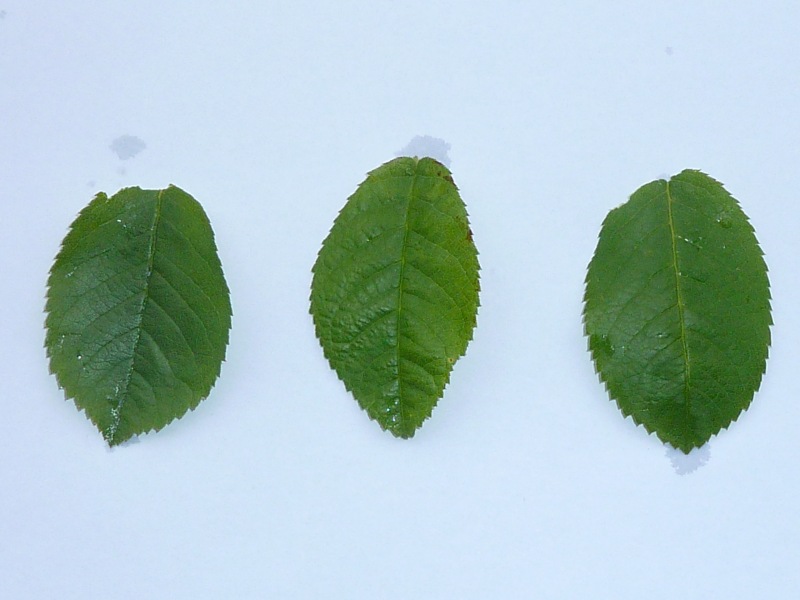 Jetzt war ich zwischen zwei Regengüssen mal draussen und habe folgenden Blattvergleich gemachtlinks: BTF mitte: Gallica officin. rechts Gallica 'Bellard'