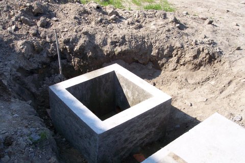 bei uns gehn da ungefähr 3.000l rein... es sind betonrohre, die übereinandergestapelt wurden - die zwischenräume wurden mit wasserfestem mörtel zugespachtelt; nach oben hin verjüngen sich die rohre und daher bleibt nur der kleine deckel von 60 cm übrig...bei uns ist der untergrund schotter und es versickert eigentlich alles recht gut; nur dort wo rund ums haus planiert und festgekarrt wurde ist es ein wenig kritisch...