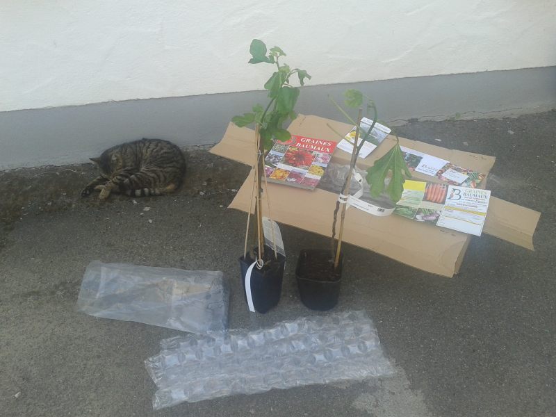 Rechts die Doree, links die Brown Turkey. Beide etwas angeschlagen vom Versand, wurden jetzt umgetopft. die doree hatte komische Schmierlausähnliche Viecher auf den blättern, hab ich plattgedrückt. :-XCampanulasamen gabs gratis dazu. :)Was sagt ihr?