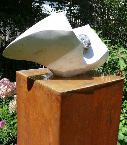 Die Skulptur passt perfekt auf den Brunnen. Schön.