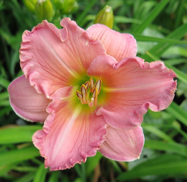 das kennen wir doch.Ausgesucht hatte ich mir Oy Vey aufgrund eines Fotos mit pastelliger Blüte - beim ersten Erblühen dachte ich an eine Fehllieferung.. So viel dunkler.Über Tag hellte sie dann noch auf, aber mehr ein schlaffes rosa im Einklang mit den schlapperen Blütenblättern.