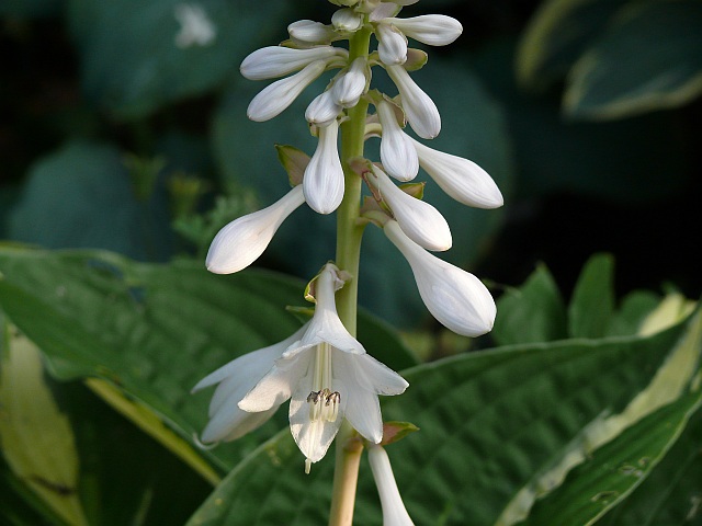 'Snow Mouse' und auch 'Holy Mouse Ears' verhalten sich hier anständig, nur bei 'Cat & Mouse' gibt es öfter mal grüne Triebe und die halte ich inzwischen für entbehrlich.Hosta 'Ann Kulpa' gefällt mir dagegen von Jahr zu Jahr mehr, hier ein Foto der beginnenden Blüte.